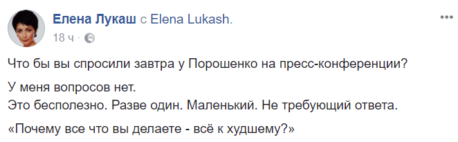 "Неужели у кого-то еще остались вопросы к Порошенко?", - иронизирует журналист Алеся Медведева.
