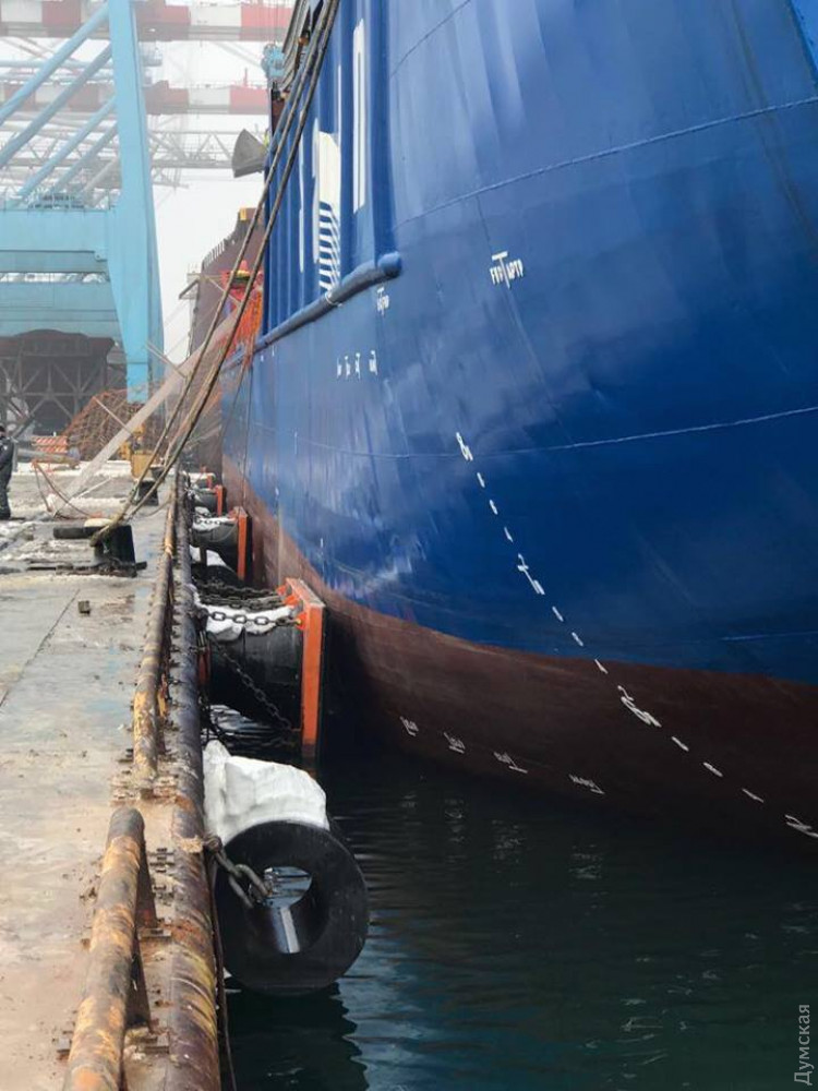 В субботу утром в порту "Южный" швартующееся судно едва не разбило причал. Об этом пишет "Думская".