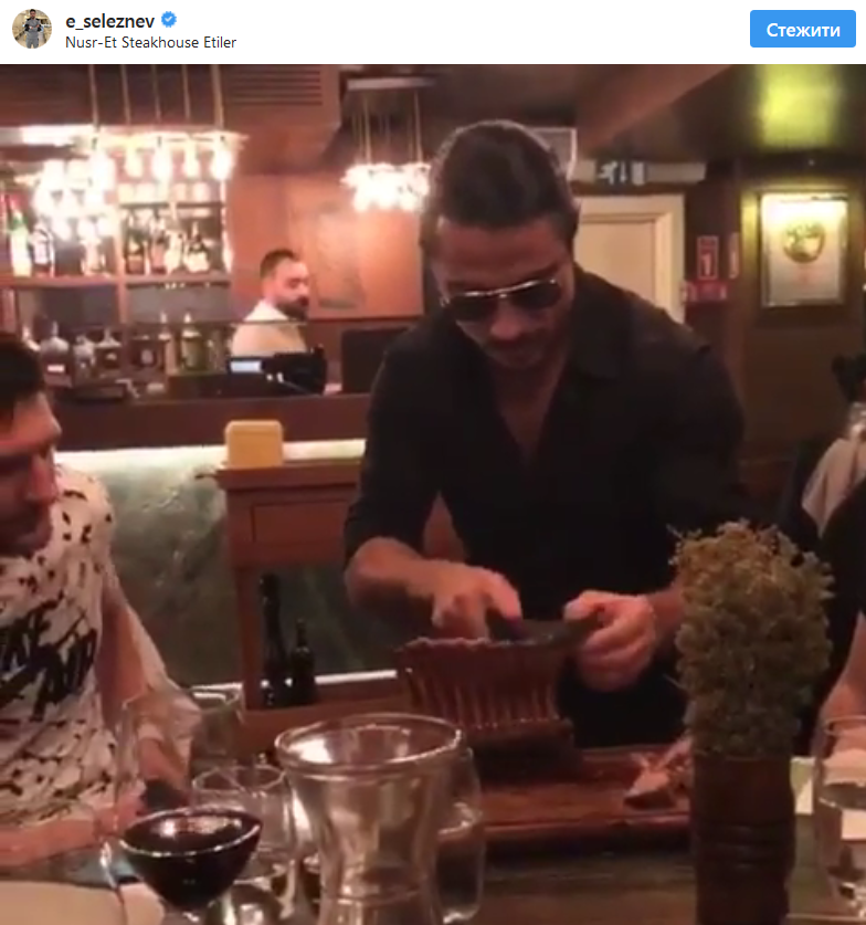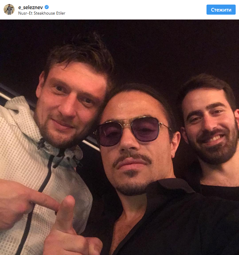 После невроятной победы Евгений Селезнев посетил роскошный ресторан "Nusr-Et Steakhouse Etiler" в Стамбуле, где для него приготовил мясо знаменитый турецкий повар Нусрет Гекче, по прозвищу Король стейков. Тот самый, который готовил еду, в частности для Леонардо Ди Каприо и других голливудских звезд.