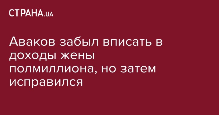 Аваков забыл вписать в доходы жены полмиллиона, но затем исправился