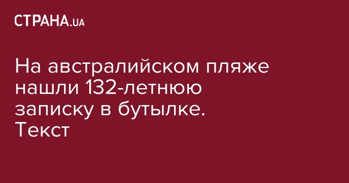 На одном из пляжей Западной Австралии нашли послание в бутылке. Оно было написало 132 года назад - в XIX веке. Предполагается, что это самая старая бутылочная записка из найденных на сегодняшний день.