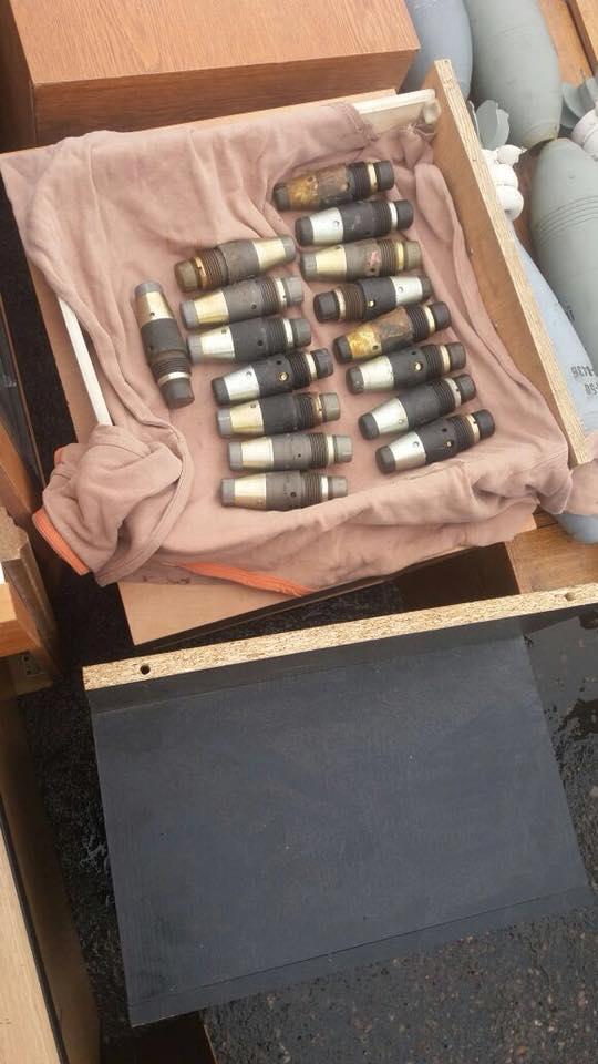 На обнародованных фото арсенала – взрыватели к минам, 80-мм миномет, 120 мин и полтора десятка автоматов, которые выложены на столы. По информации Карпенко, задержание пытавшихся перевезти их людей осуществлялось силами пограничников Антитеррористического центра.