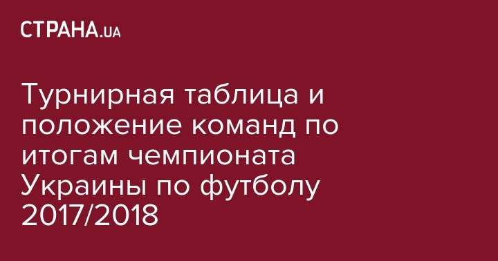 Турнирная таблица и положение команд по итогам чемпионата Украины по футболу 2017/2018