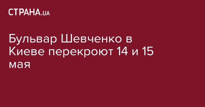 Как сообщала "Страна", Киевская городская государственная администрация предупреждает горожан и гостей столицы об ограничении движения автотранспорта в центре города на бульваре Тараса Шевченко в период с 10 по 27 мая в связи с продолжением ремонта дорожного покрытия.