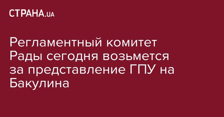 Парламентский комитет по вопросам Регламента и организации работы Верховной Рады сегодня, 12 марта, рассмотрит представление генпрокурора Юрия Луценко на предоставление согласия парламента на привлечение к уголовной ответственности, задержание и арест народного депутата Украины Евгения Бакулина. Об этом заявил глава ВР Андрей Парубий во время заседания согласительного совета.