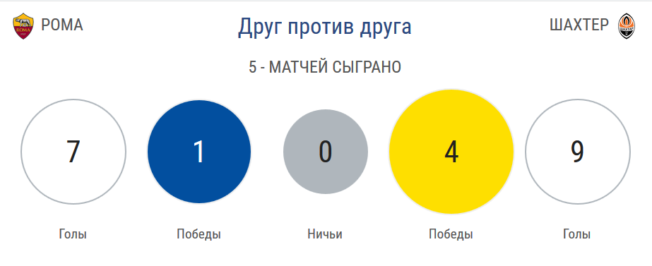 19.45 Для начала немного очень и очень любопытной статистики. Оказывается, в личных официальных встречах Шахтера и Ромы полное, тотальное и безоговорочное преимущество у нашей команды. Вот такая картина маслом!