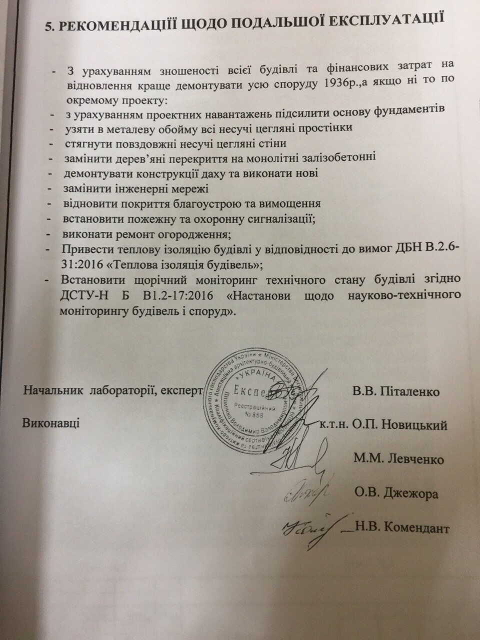 Также были опубликованы документы по обследованию технического состояния здания лицея. Согласно документу, с учетом изношенности здания 1936 года постройки и финансовых затрат лучше снести лицей, а если нет, то усилить основу фундамента; взять в металлическую обойму все несущие кирпичные простенки; стянуть продольные несущие стены; заменить деревянные перекрытия на монолитные железобетонные; демонтировать крышу и соорудить новую; заменить инженерные сети; обновить покрытия благоустройства и мощения; установить пожарную и охранную сигнализации; провести ремонт ограждений, а также провести работы по утеплению здания.