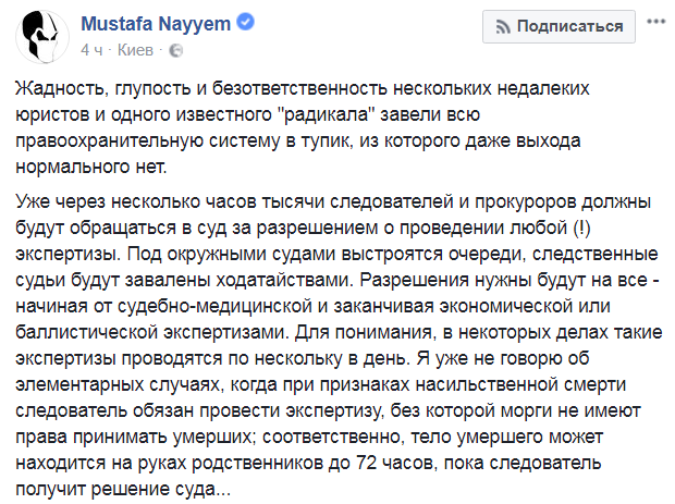 "Откровенно говоря, это нехорошее решение. Но другого сейчас нет, поскольку полную отмену этих правок не поддержит как минимум две парламентские фракции - БПП и Радикальная партия. И теперь я уже уверен, что эти правки сознательно были внесены и затем сфальсифицированы с целью препятствования расследованию экономических, служебных и коррупционных преступлений", - считает Найем.