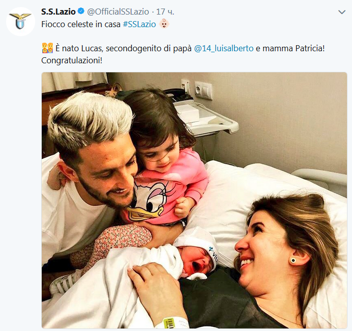 18.20 Начнем с радостных околофутбольных новостей. Накануне поединка у полузащитника Лацио и сборной Испании Луиса Альберто Ромеро родился сын. С чем его и поздравила команда перед отлетом в Киев.