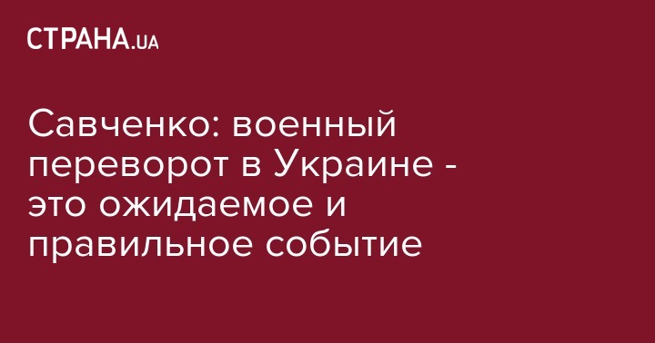По ее словам, военный переворот в Украине - это вполне ожидаемое и правильное событие.