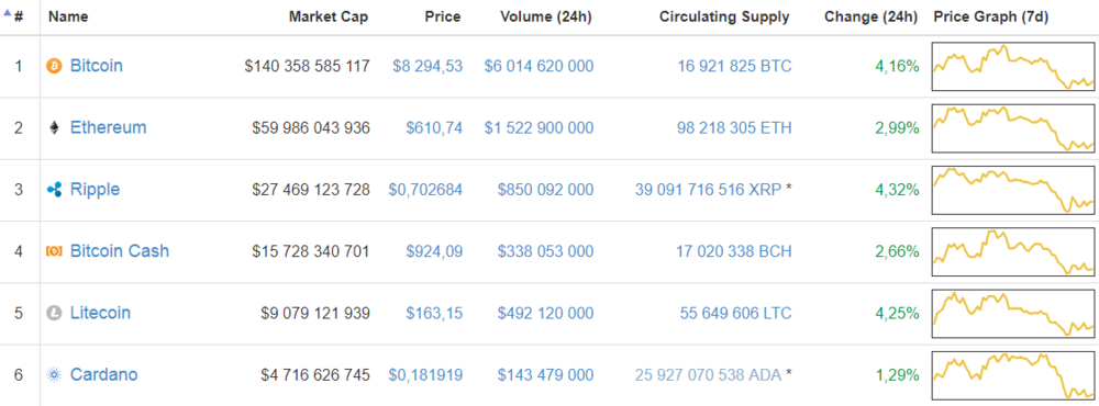 Об этом свидетельствуют данные площадки coinmarketcap.