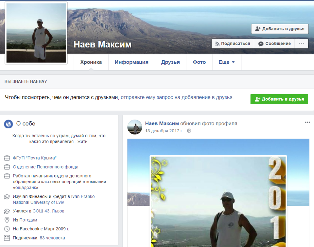 Согласно информации на сайте электронного декларирования, в 2018 году он получил денежную помощь от Максима Ивановича Наева – 139 743 гривен. Судя по фамилии и отчеству – это родной брат генерала. Человек с такими же именем и фамилией, судя по информации в социальных сетях, живет в настоящее время в аннексированном Крыму.