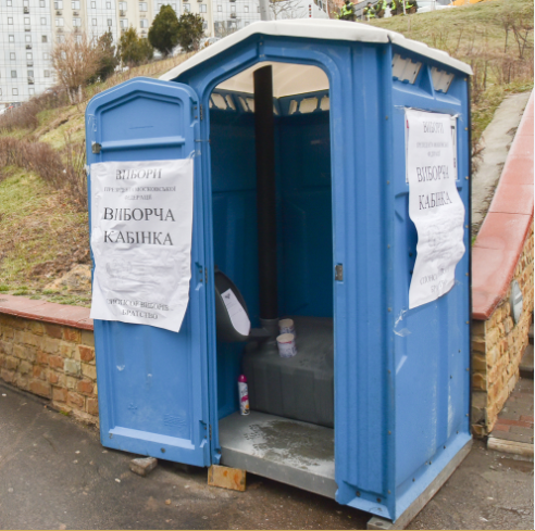 В Одессе импровизированный избирательный участок протестующие против проведение выборов РФ на территории Украины "сделали" из кабинки биотуалета. По громкоговорителям играют патриотические песни и военные немецкие марши.