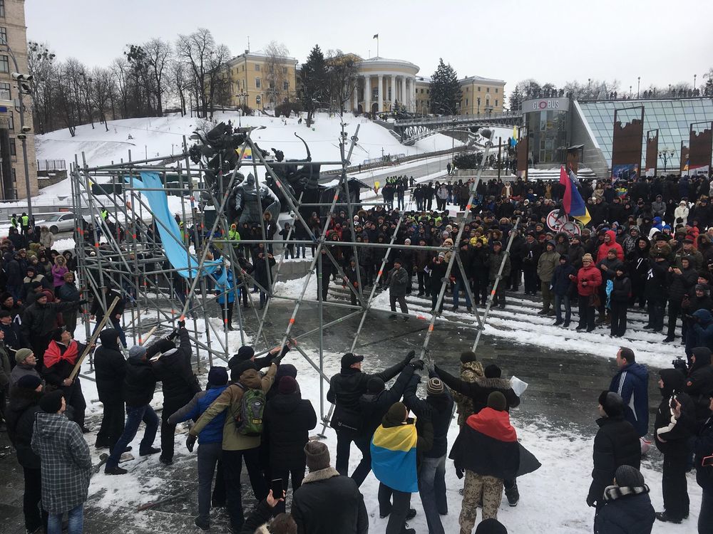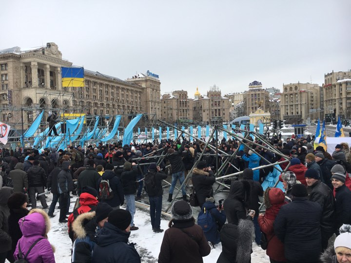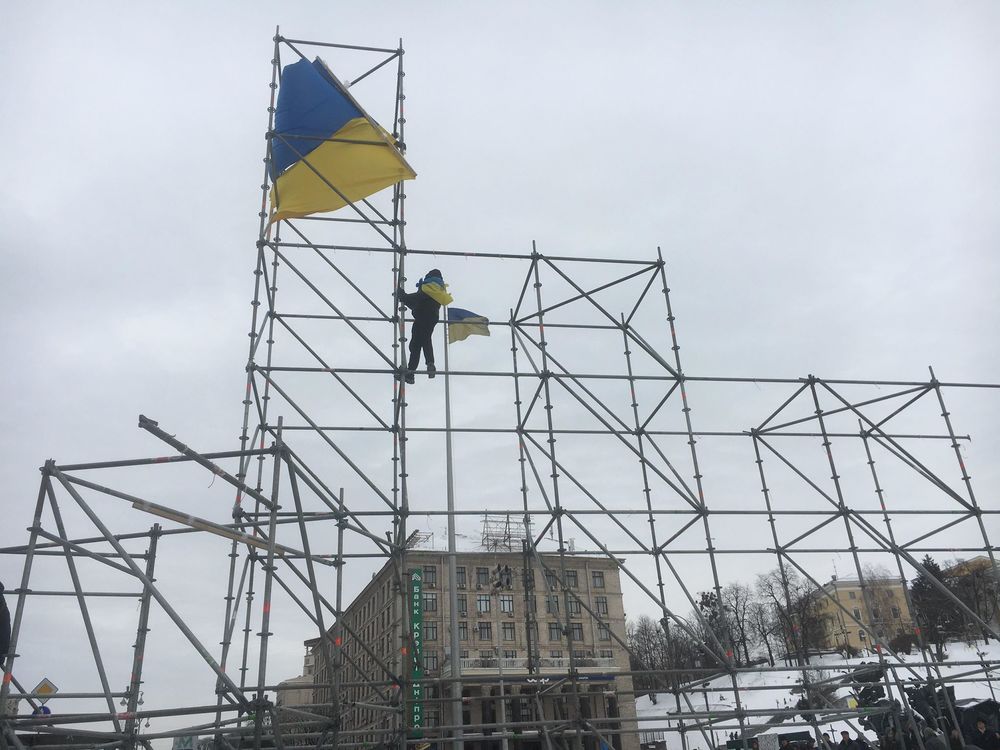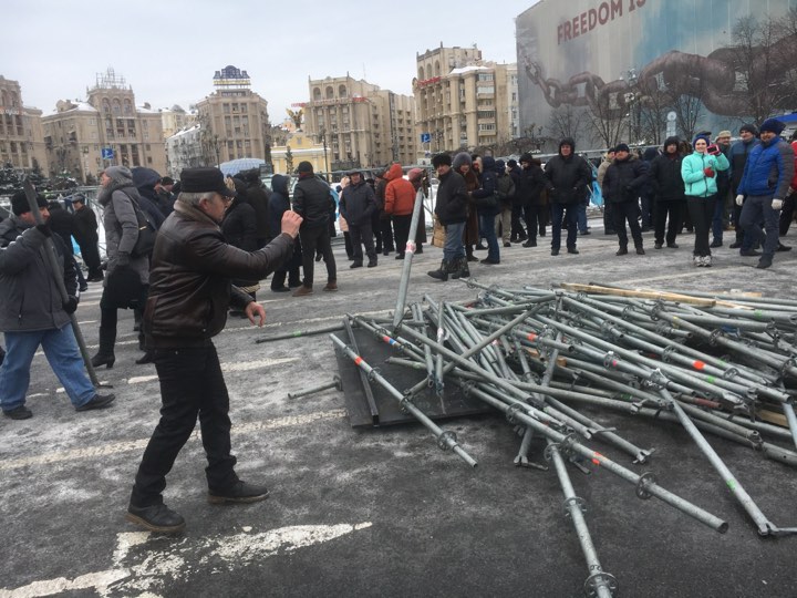 12:43  На Майдане активисты РНС разбирают "йолку" – металлоконструкции, установленные здесь ранее.