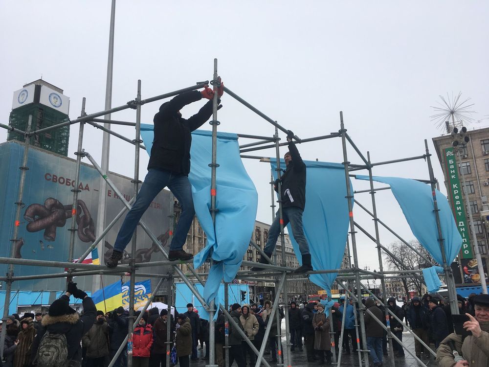 "Повалили елку – повалили Януковича. Повалили конструкции – повалим и Порошенко. Это символ", – говорит кто-то из активисток.