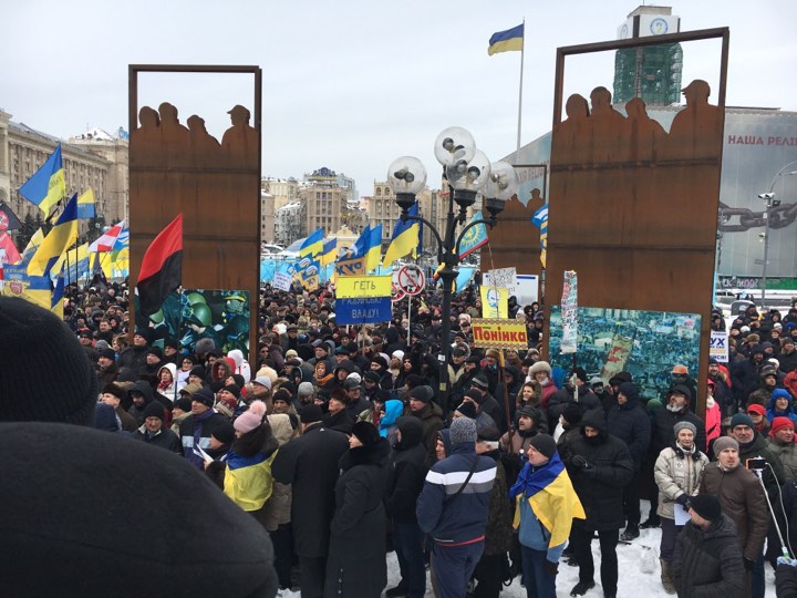 Митинг продлился до 14:00, после этого майдановцы намерены отправиться с Европейской площади к дому Порошенко в Козине.
