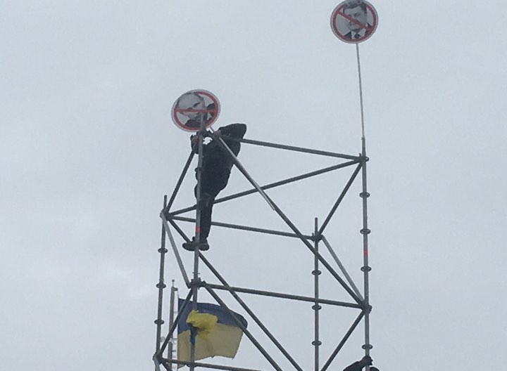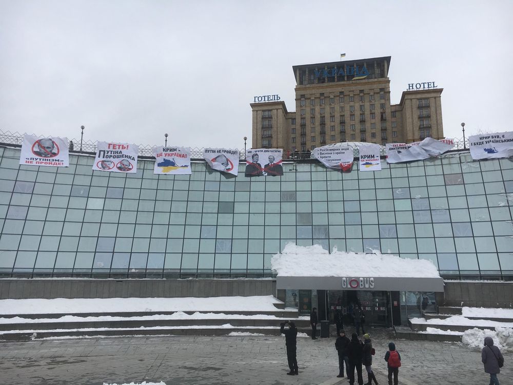 14:49  На Глобусе вывесили новые баннеры. Теперь уже против Путина, с указанием украинской принадлежности Крыма и с требованиями отставки Порошенко.