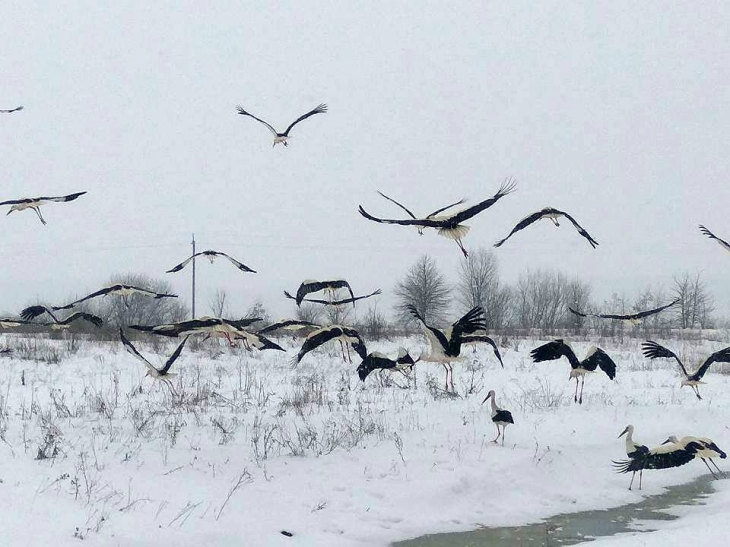 "Если вдруг в вашем городе, поселке или селе есть уже аисты и они сейчас страдают от холода и снега, просим по возможности скрыть их в какое-то (даже не отапливаемое) помещение, дать есть рыбьи головы или кусочки мяса лучше пресноводных рыб или мелких карасиков, или субпродукты птицеводства (куриные головы, шеи, сердца или печени), или еще (если не жалко) кусочки куриного или нежирного мяса говядины, а также поставить емкость с водой", - призывают жители в соцсетях.