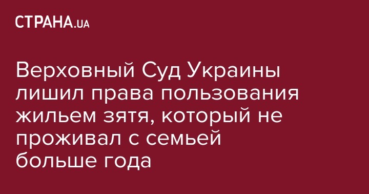 Верховный Суд Украины лишил права пользования жильем зятя, который не проживал с семьей больше года