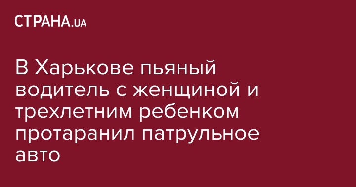 В Харькове пьяный водитель с женщиной и трехлетним ребенком протаранил патрульное авто