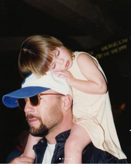 "Для большинства людей он - больше мифическая икона жанра экшн, но для меня это большой чудило всегда был моим папой. Сегодня ему 63, и я безумно рада, что мне удалось провести этот день с ним и напомнить ему, как я благодарна за то, что он всегда меня подбадривал, чтобы я была большая как громила, показывал, что это нормально - причудливо танцевать где угодно, старался, чтобы я слушала классический рок, и никогда не прятал несравненной любви к своему целого шабаша дочерей. Люблю тебя, папа", - призналась Скаут.