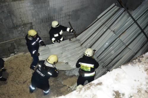 Спасатели расчистили снег лопатами с обрушившихся металлических конструкций. Также с помощью бензореза и ломов они разобрали поврежденную крышу и вынесли ее из подземного перехода.