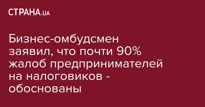 "Согласно различным оценкам, около 35-40% украинской экономики находится в тени, что свидетельствует о том, что многие предприятия не платят налоги. Однако после расследования жалоб, которые поступают к нам, мы видим, что в 90% случаев прав был бизнес, а налоговая - нет. Очень часто действия налоговых органов или не соответствуют законодательству, или эти органы неверно его интерпретируют", - рассказал Шемета.