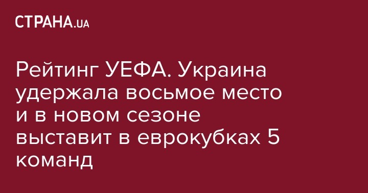 Рейтинг УЕФА. Украина удержала восьмое место и в новом сезоне выставит в еврокубках 5 команд