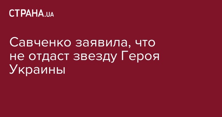 Савченко заявила, что не отдаст звезду Героя Украины