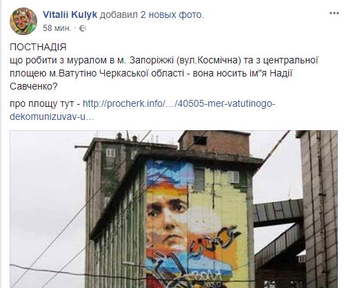Политолог Виталий Кулик задается вопросом: "Что делать с муралом в г. Запорожье (ул.Космическая)?"