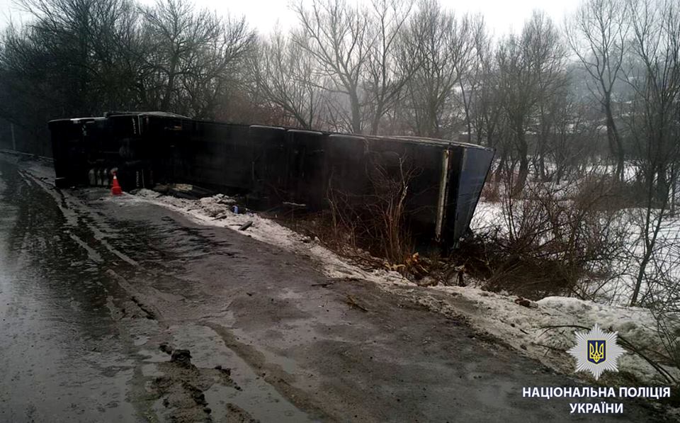 На трассе под Харьковом столкнулись сразу 7 авто и перевернулась фура