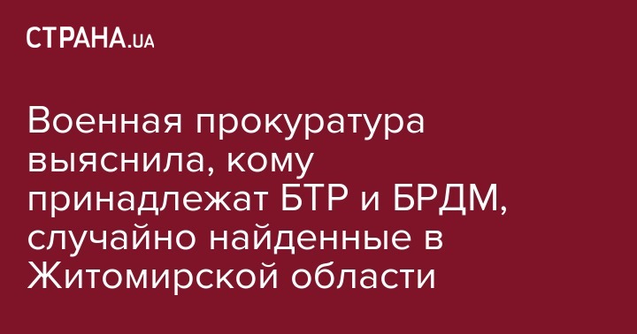 Военная прокуратура выяснила, кому принадлежат БТР и БРДМ, случайно найденные в Житомирской области