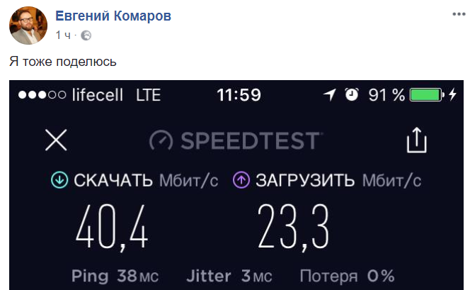 Во Львове lifecell впервые показал скорость, близкую к заявленной.