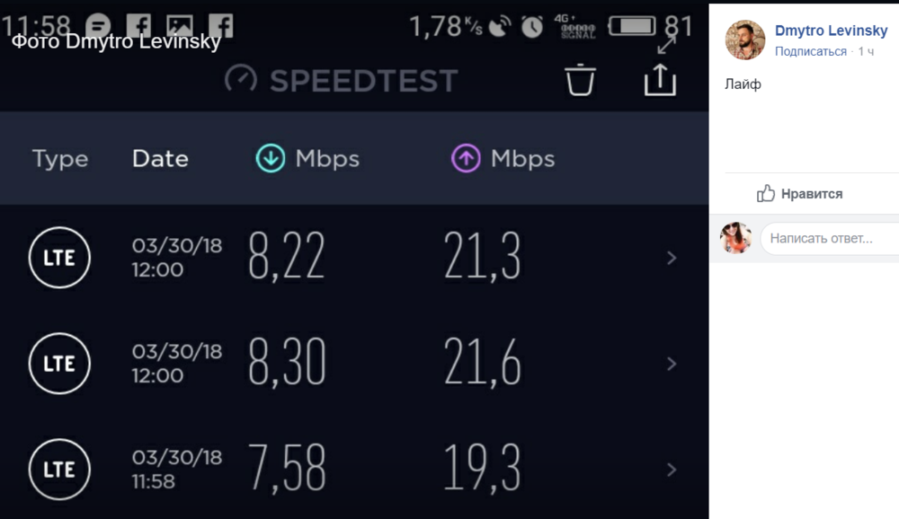 Впрочем, многое зависит от места - похоже, покрытие таки остается главной проблемой 4G в Украине. Так, киевлянин Юрий Котик говорит, что на Оболони скорость LTE колеблется на уровне тройки.
