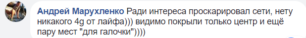 "Ради интереса проскарировал сети, нету никакого 4g от лайфа. Видимо покрыли только центр и ещё пару мест "для галочки"", - пишет киевлянин Андрей Марухленко.