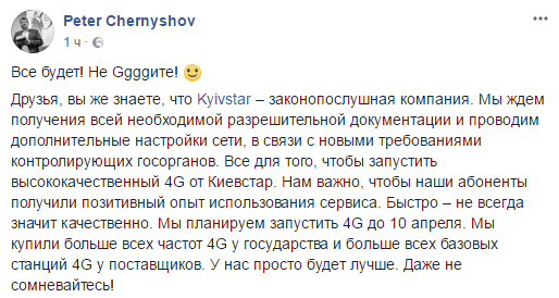 Что же касается "Киевстара", то он обещает сделать запуск 10 апреля, намекая, что его 4G будет хоть и позже, но качественнее.