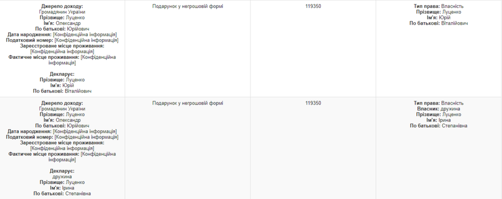 Вместе с тем, жена Юрия Луценко в прошлом году получила 240 тысяч 500 гривен заработной платы.