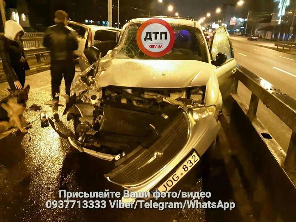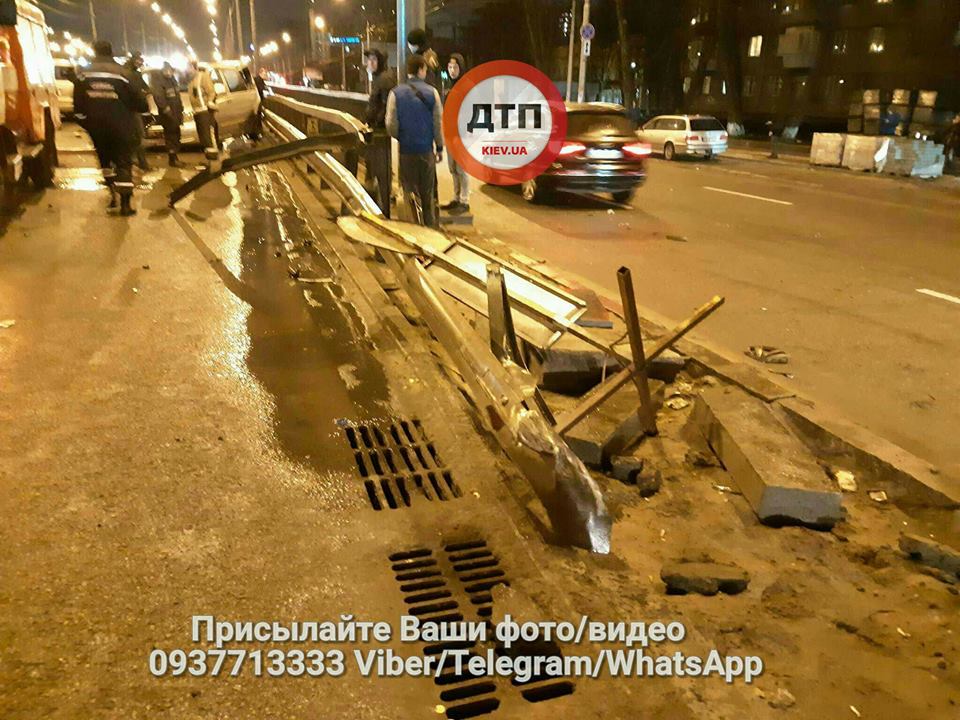 "Война с отбойниками продолжается: жёсткое ДТП с пострадавшими в Киеве на проспекте Победы. Перед эстакадой путепровода Нивки, в направлении центра города, водитель микроавтобуса Mercedes Vito, не заметив разделительный знак, врезался в отбойник, пролетел несколько метров, и сзади в него "влетел" Chrystler", - говорится в сообщении.