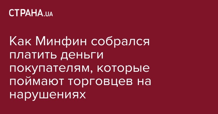 В Министерстве финансов Украины предложили компенсировать покупателям выявившим нарушение кассовой дисциплины при покупке товаров или услуг стоимостью более 50 необлагаемых минимумов доходов граждан - их стоимость за счет повышения ответственности продавцов.