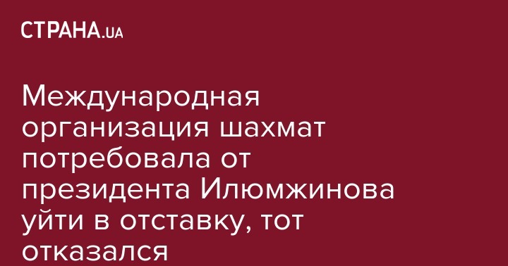 Международная федерация шахмат (ФИДЕ) потребовала от гражданина России Кирсана Илюмжинова немедленно уйти в отставку с должности президента организации.