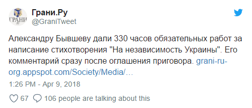 Вот само стихотворение, за которое Бывшеву придется  отработать 330 часам обязательных работ.