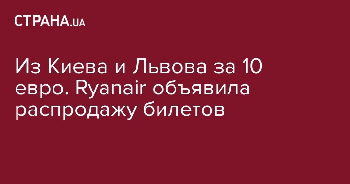 Из Киева и Львова за 10 евро. Ryanair объявила распродажу билетов