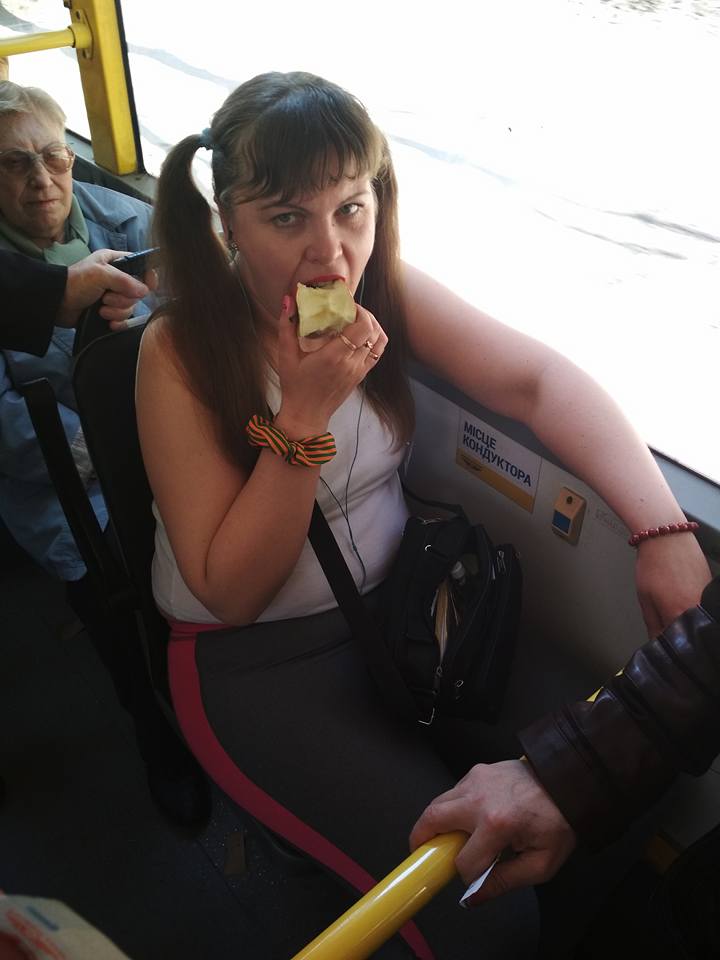 "Кошмар в тролейбусе! Спешил и нужно было подъехать пару остановок, захожу в 14:00 на Ереванской в троллейбус №17 (бортовые номера 3368) ищу минуту кондуктора, нет и нет, обнаруживаю данного персонажа в наушниках, кушающее яблоко, да ещё и пьяное, кричу где кондуктор, тишина, второй раз, третий раз, из наушников пьяного персонажа музыка играет так, что пол-троллейбуса слышит, потом понимаю что это и есть кондуктор, никаких опознавательных знаков вообще нет, человек просто не реагирует на окружающих, люди ходят себе, спрашивают, где кондуктор, ищут как оплатить, а она ноль на массу, ребята, я такого ещё не видел", - возмутился он.