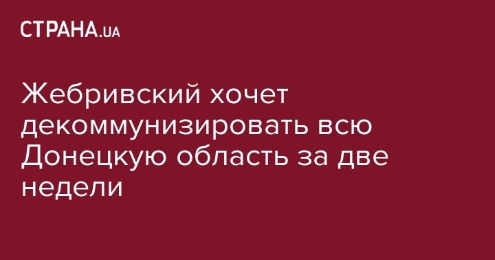 Глава Донецкой областной военно-гражданской администрации Павел Жебривский во время заседания коллегии облгосадминистрации во вторник поставил перед городскими головами и руководителями райгосадминистраций окончательный двухнедельный срок на выполнение Закона о декоммунизации.