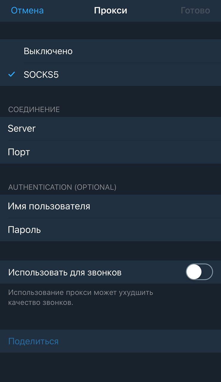 3. Используем SOCKS5 и прописываем Server и Порт