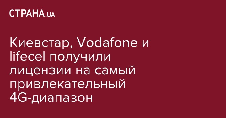"Большая тройка" украинских мобильных операторов получила лицензию на право реализации технологии 4G в самом привлекательном диапазоне 1800 МГц.