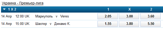 Но пока футбольные эксперты осторожничают с прогнозами, букмекеры свой выбор сделали. Авторитетная британская William Hill победу Шахтера оценила кэфом в 1,55, а ставки на успех киевлян принимают с коэффициентом 5,50.