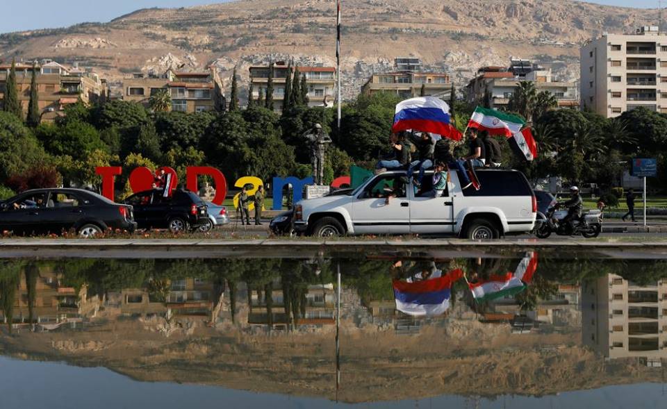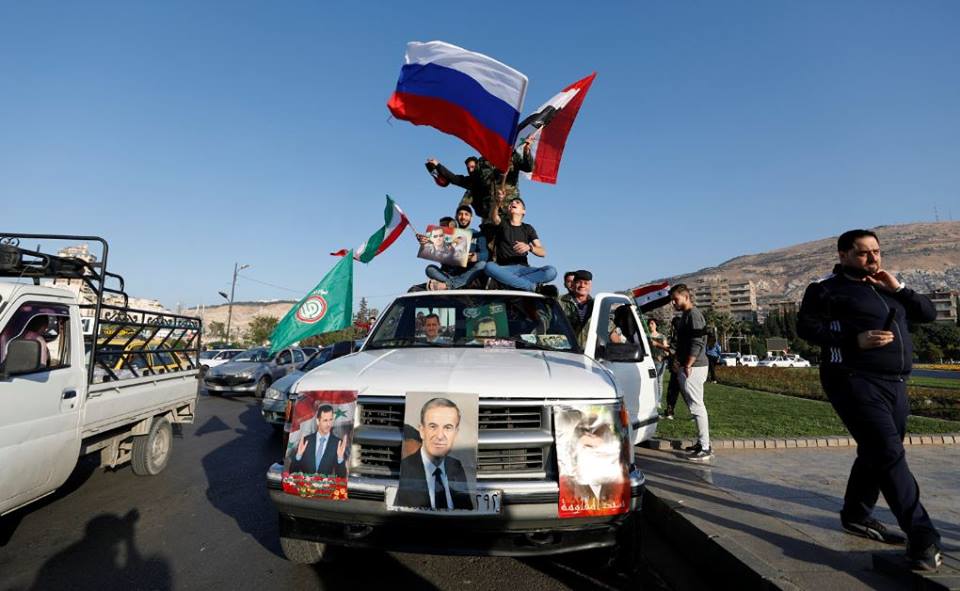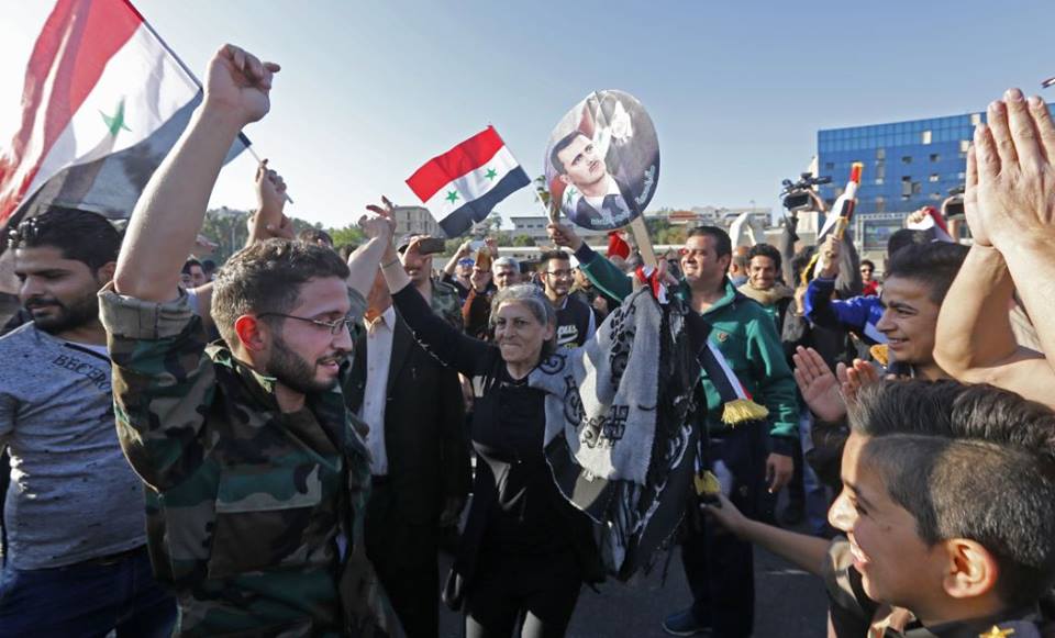 На кадрах, опубликованных в сети видно, что люди утром вышли на улицы Дамаска с национальными флагами и портретами главы государства.