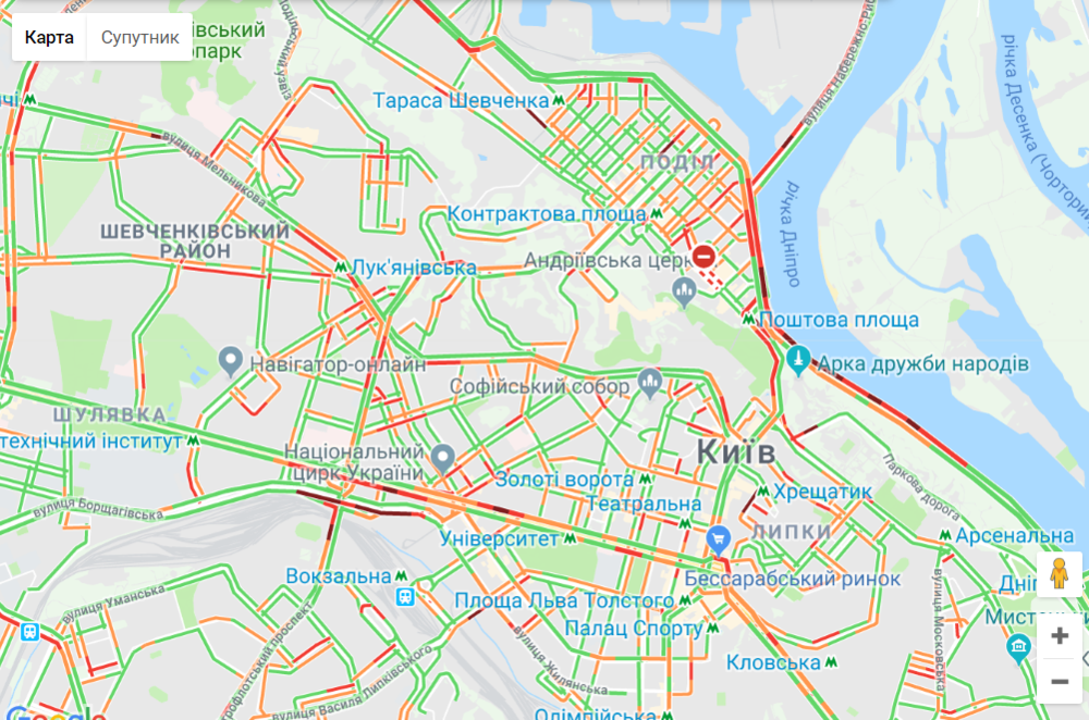 Уже привычными оказались заторы поблизости станций метро: "Театральная", "Льва Толстого", "Университет", "Крещатик", "Майдан Независимости" и "Дворец спорта".