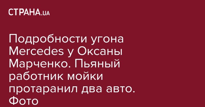 В Киеве 16 апреля пьяный работник автомойки угнал Mercedes G-Class и протаранил авто на светофоре. По некоторым данным автомобиль принадлежит Виктору Медведчуку, а на мойке его оставила супруга политика известная телеведущая Оксана Марченко.